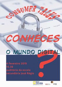 Para assinalar o mês da segurança na net, mais uma sessão em parceria com a DECO Jovem, para alunos de 12º ano. “Conheces o mundo digital?”, pela drª Tânia Oliveira, jurista do Departamento Jurídico e Económico da DECO.
